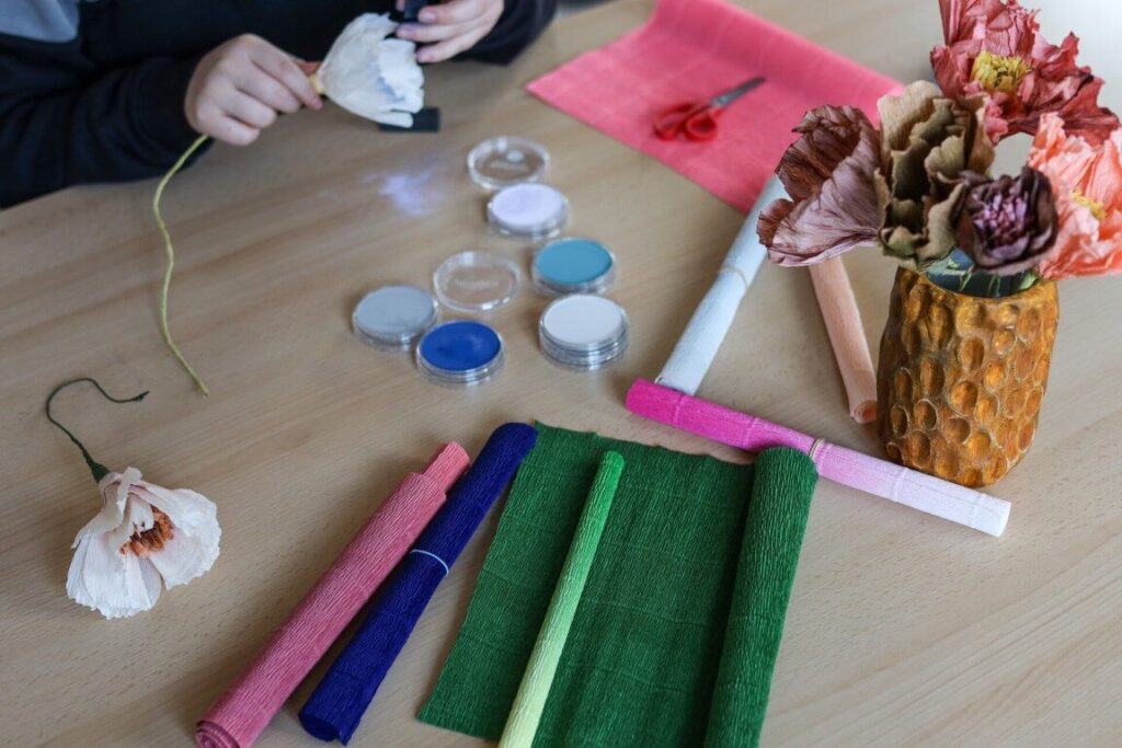 Du arbejder med forskellige materialer, teknikker og kreative processer. Fokus er på idéudvikling, eksperimenter og fordybelse frem for på bestemte udtryk eller færdige resultater.